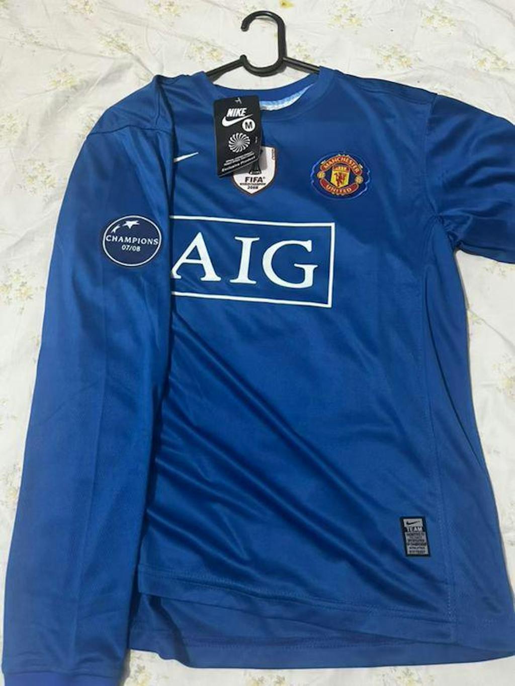 Experience the premium quality 2007/08 Manchester United Blue Shirt, now available at Noor Sports. With embroidered logos and printed sponsors, this Away Shirt is perfect for any fan looking for a top-notch addition to their wardrobe. Show your support for Manchester United in style.